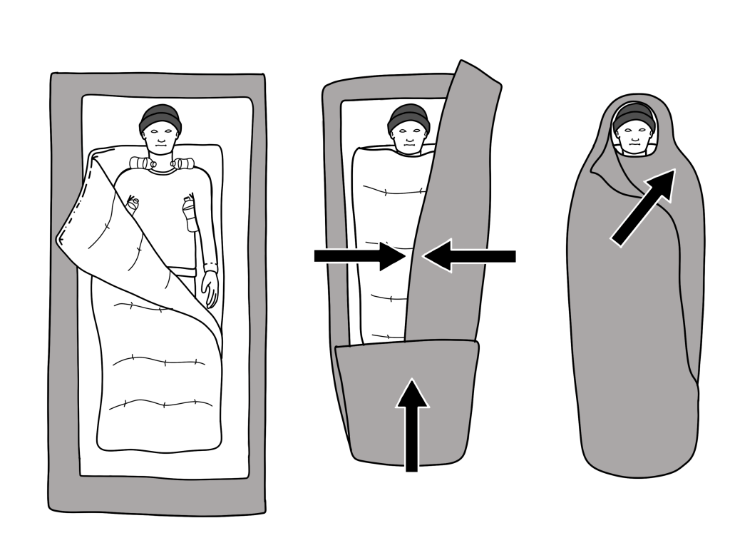 So don’t tuck your head inside the bag and make sure your nose remains open to exhale out. Then the moisture can escape through the tent ventilation.